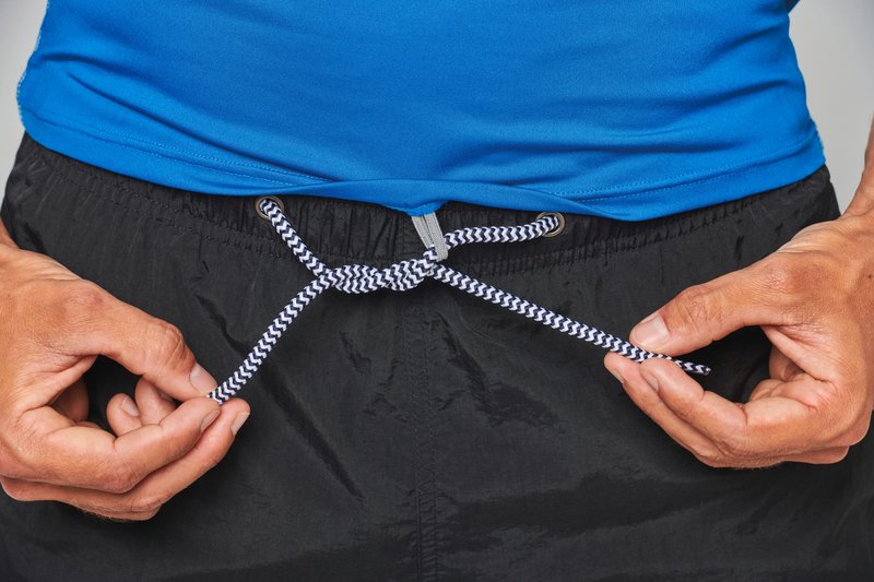 • Boucle élastique insérée dans l'ourlet devant permettant de passer le cordon du short afin de stabiliser le t-shirt.